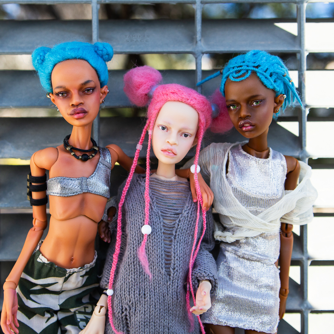 For now, there are three full set dolls in stock, two with the Curious face and Supple body but featuring different skin tones: Ember with a Mangrove one and Mshita with a darker and the less opaque Rainforest; the third Gal features a Cunning face, Stanced torso and Tropical skin tone.