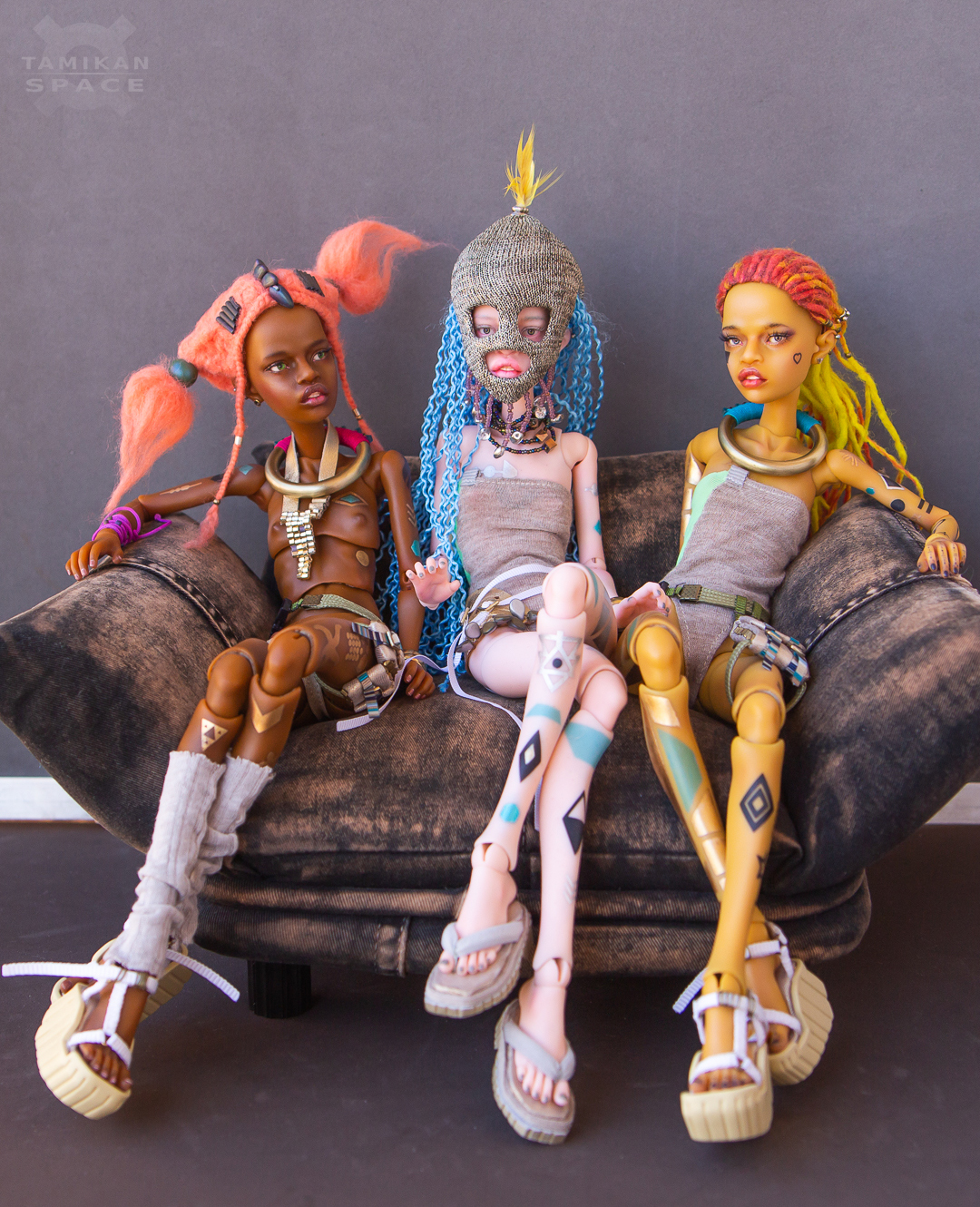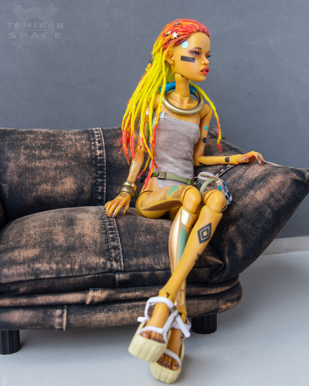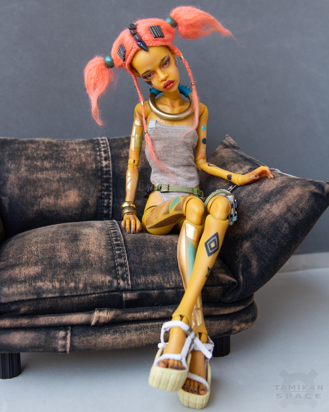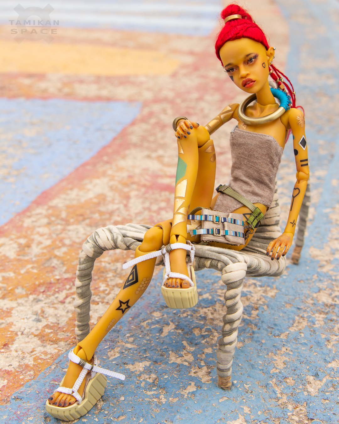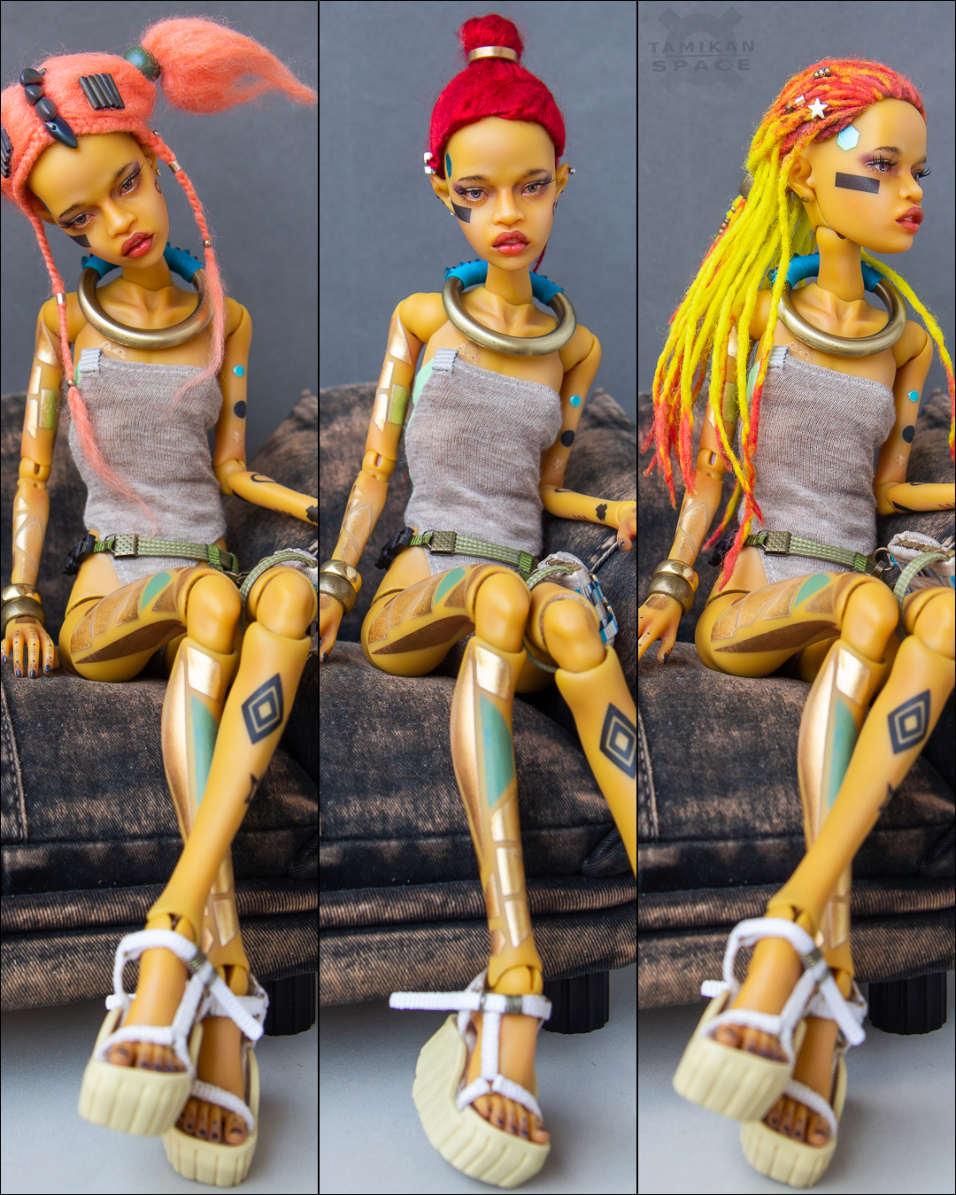 Ember is one of a kind full set Sprout Gal doll in Mangrove tint featuring Curious faceplace of Kioni mould.