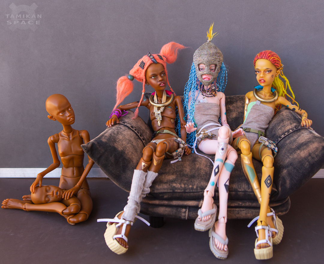We also have several full set dolls in stock, they can be mailed out as soon as the holidays are over, from the second week of January. There's one Arctic Gal Alpha and her Tropical sister. There are also three Kionis, two with the Curious face and Supple body but featuring different skin tones: Ember with a Mangrove one and Mshita with a darker and the less opaque Rainforest; the third Gal features a Cunning face, Stanced torso and Tropical skin tone.